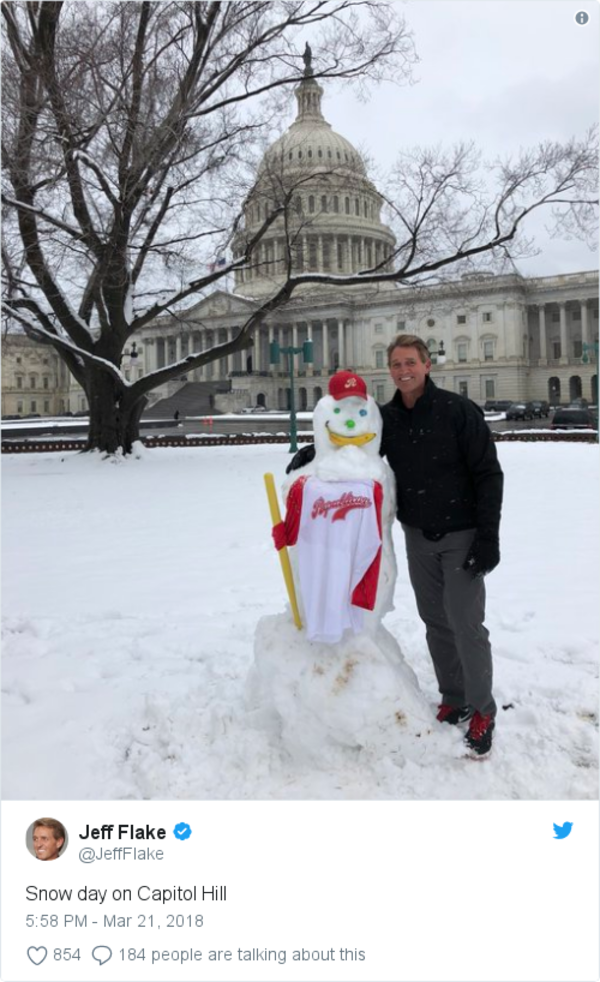 Sen. Jeff Flake (R-Ariz.) embraced the city's snow day: