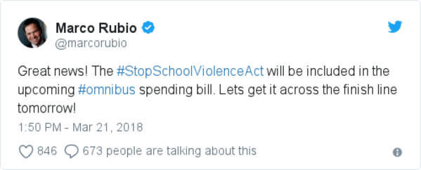 But these incremental reforms take political pressure off Republicans to pass a standalone bill. As tens of thousands of protesters descend on Washington this weekend to agitate for stronger gun control, GOP lawmakers will point to Fix NICS and the CDC rider to inoculate themselves from attacks that they’ve done nothing in response to the Florida school shooting.