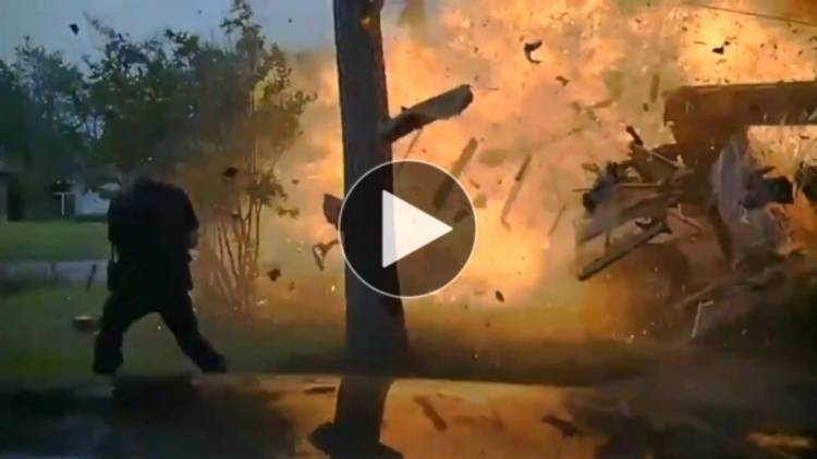 A camera captured the moment a Texas house exploded as officers arrived to respond to a car crash: