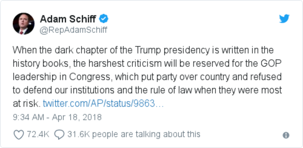 -- House Republicans are enlisting the president's help in an Arizona special election next week held in a district Trump carried by 21 points. David Weigel and Mike DeBonis report: “Republican Debbie Lesko, a former state senator, faces Democrat Hiral Tipirneni, a physician and health-care advocate, in the April 24 contest … Starting earlier this month, Republican voters in the western Phoenix suburbs have received robo-calls in which Trump warns that ‘illegal immigrants will pour right over your border’ if Democrats win the House. ‘Nancy Pelosi wants to send a liberal Democrat to Congress to represent you,’ Trump says in the call. ‘We can’t have that.’ … Republican groups have spent more than $500,000 to boost Lesko … The involvement of the president and GOP leadership underscores that no race is a surefire win for the party in an unforgiving midterm year ... "