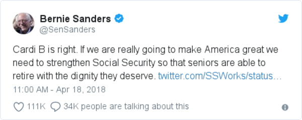 Sen. Bernie Sanders (I-Vt.) showed some love for Cardi B: