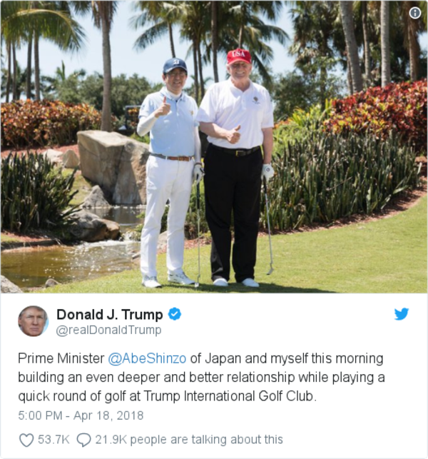 -- Trump expressed optimism about his expected summit with Kim Jong Un, but vowed to cancel or walk out of the meeting if there are signs it “is not going to be fruitful.” David Nakamura and Anne Gearan report: “Trump also said his administration is negotiating with Pyongyang for the release of three Americans who remain captive in the North and suggested that they could be freed as part of a diplomatic thaw … ‘If I think it’s a meeting that is not going to be fruitful, we’re not going to go,' Trump said at a joint news conference with Japanese Prime Minister Shinzo Abe[.] ... He added that he intends to remain ‘flexible’ as a negotiator …”