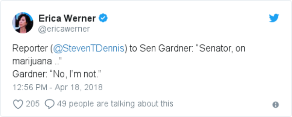 Sen. Cory Gardner (R-Colo.) clarified his mental state, per a Post reporter: