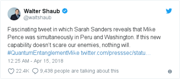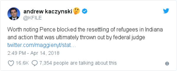 -- Mike Pence traveled to the Summit of the Americas in Lima, where he struck tones of compassion toward refugees and described a “moral obligation” to help suffering people around the world. Jenna Johnson reports: “It’s a tone that’s starkly different from that of [Trump], who rarely expresses sympathy for people fleeing violence, poverty or oppression ... Pence was even able to arrange a sit-down meeting with Mexican President Enrique Peña Nieto, who has publicly feuded with Trump over [the proposed border wall], a topic that Pence said they did not touch … Pence announced on Friday that the administration will spend another $16 million helping Venezuelan refugees living in Brazil and Colombia.” He pledged to do “everything in our power to provide sustenance and support to those who have fled this tyranny,” adding: “Under the Maduro regime, Venezuela is essentially a failed state. Failed states know no borders.”