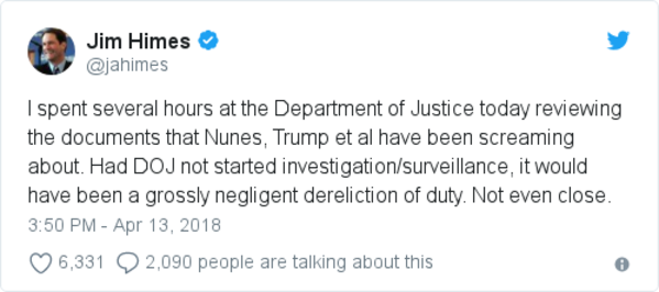 A Democrat on the House Intelligence Committee defended the DOJ: