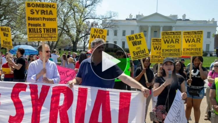 Anti-war demonstrators protested against the Syria strikes at the White House: