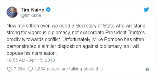 Another Democratic senator voiced opposition to Mike Pompeo's nomination as secretary of state: