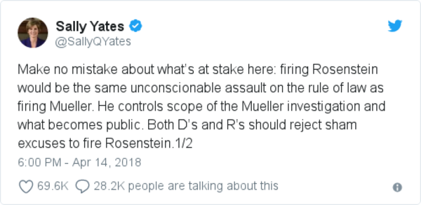 A former acting attorney general outlined the dangers of Trump firing Rod Rosenstein: