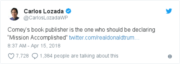 - Carlos Lozada: “In his new book, James Comey calls for ‘ethical leadership.’ But does he live up to it?”
