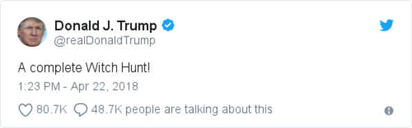 Trump repeated his favorite line about the Russia investigation after a weekend of attacking James Comey over Twitter: