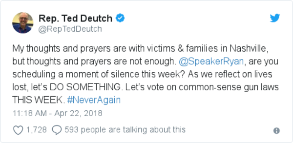 Rep. Ted Deutch (D-Fla.), who represents Parkland, called for stricter gun laws: