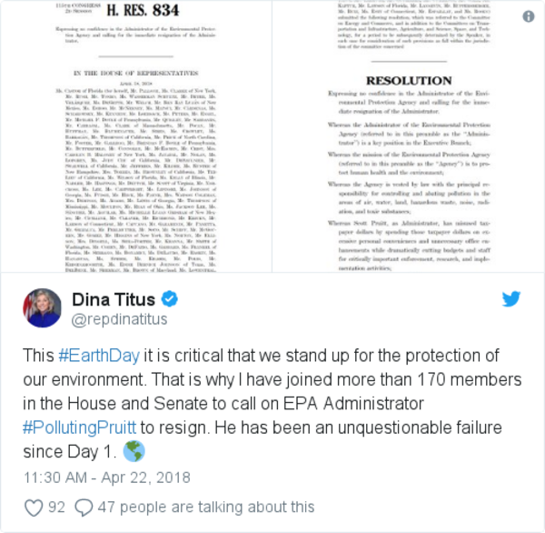 Congressional Democrats used Earth Day as an opportunity to demand Scott Pruitt's ouster:
