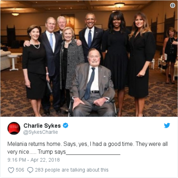 The first lady attended Barbara Bush's funeral. From a conservative commentator: