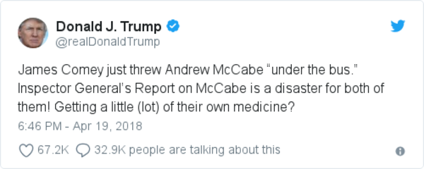 Trump commented on the inspector general's report on McCabe: