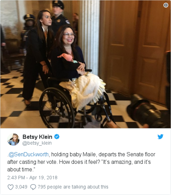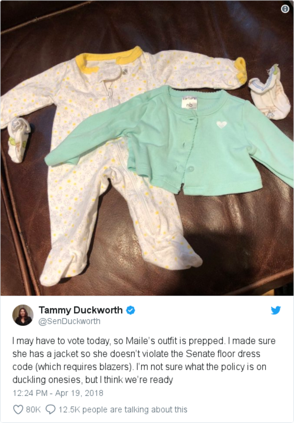 Sen. Tammy Duckworth (D-Ill.) prepared her baby daughter for a floor vote:
