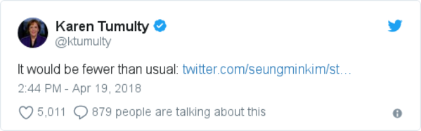 -- Coming attractions at SCOTUS: In 2017 alone, Trump’s first year in the White House, 19 states passed 63 antiabortion restrictions. Mary Jordan reports: “Mississippi’s governor just signed a law, more restrictive than in any state, banning abortions after 15 weeks. Iowa’s state Senate is trying to go even further and stop abortions at around six weeks. And 20 Ohio legislators have proposed outlawing all abortions, even if the woman’s life is in danger. In many state capitols, Republican lawmakers are backing unusually strict antiabortion laws. Many are emboldened by President Trump … Conservative lawmakers also are eager to get more restrictions on the books in case November’s elections bring a surge of Democrats hostile to them. Federal courts have immediately blocked many of these antiabortion laws, including Mississippi’s. But they still have a purpose: to set up legal challenges to Roe v. Wade … at a time when Trump could appoint the justice who helps overturn it. … About 1 in 4 women have an abortion in their lifetime, according to a report by the Guttmacher Institute.”