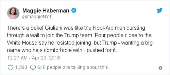 A New York Times reporter shared this detail on Giuliani's decision to join Trump's legal team: