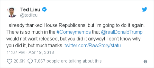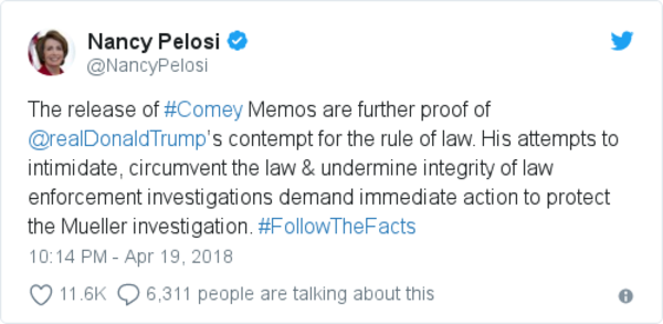 Twitter reacted to the release of the Comey memos. From Nancy Pelosi: