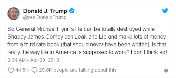 This morning, Trump again attacked Comey's book and expressed sympathy for Flynn: