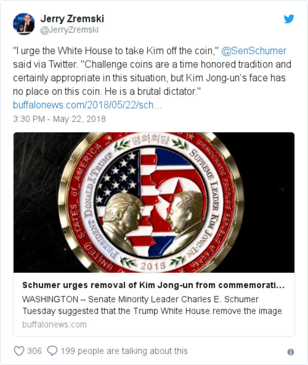 Sen. Chuck Schumer wants Kim off the White House's commemorative coin: