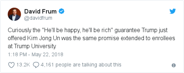 -- “Now the question is how Mr. Trump will redefine success, if the summit meeting actually takes place as planned,” the New York Times’s Motoko Rich writes:
