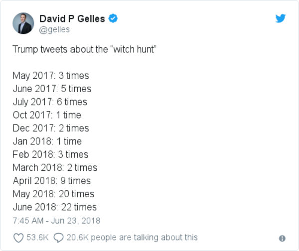 Trump has stepped up his “witch hunt” references on Twitter, per a CNN producer: