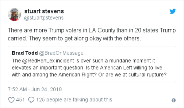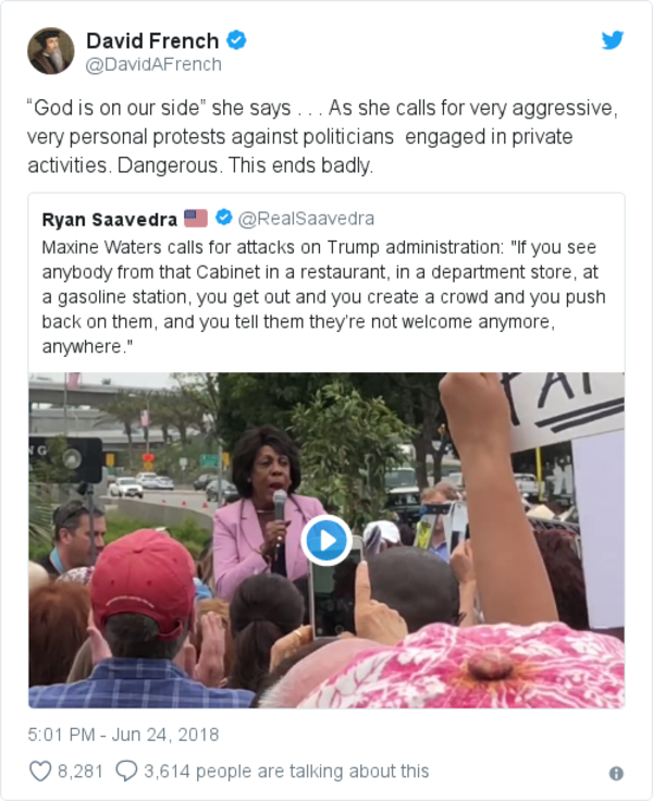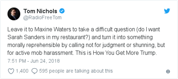-- Several prominent conservatives who have been critical of Trump criticized Waters and said she was playing into the president’s hands: A Naval War College professor and former GOP staffer, who wrote “The Death of Expertise,” added: