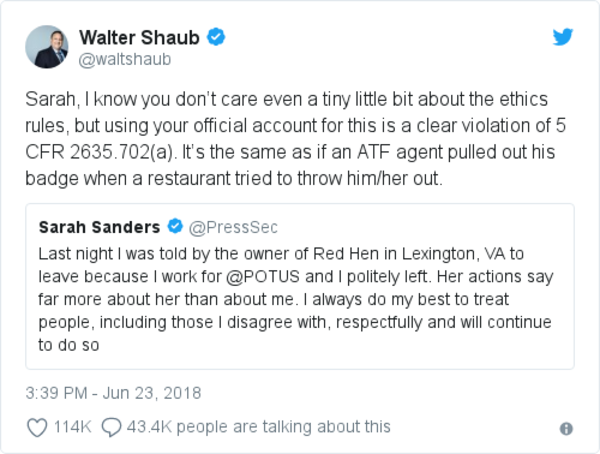 The former director of the Office of Government Ethics believes Sanders’s tweet runs afoul of ethics rules: